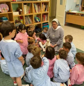 La preghiera è prima di tutto una necessità di noi adulti. Nella nostra scuola l’educatrice ogni giorno sente la necessità di affidare i bambini nelle mani del Signore. Questa esigenza non può risolversi facendo pregare i bambini, ma pregando con loro, invitandoli ad esprimere i loro sentimenti attraverso preghiere spontanee, canti di ringraziamento. La preghiera è uno dei momenti privilegiati in cui il bambino intuisce che egli è oggetto di amore da parte di Dio Padre e suscita sentimenti di stupore verso il creato.